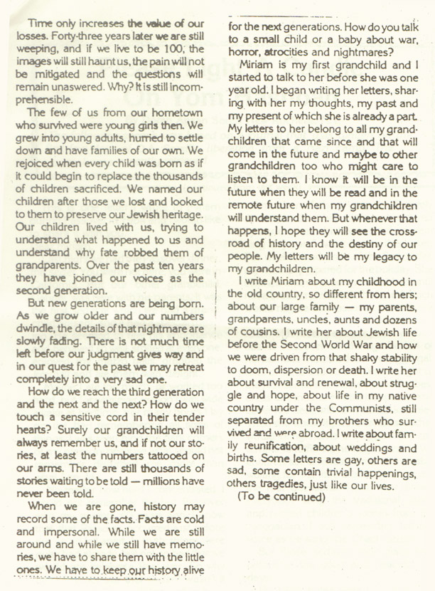 Dora's speech and the Passover letter were published in six weekly installments in the Jewish